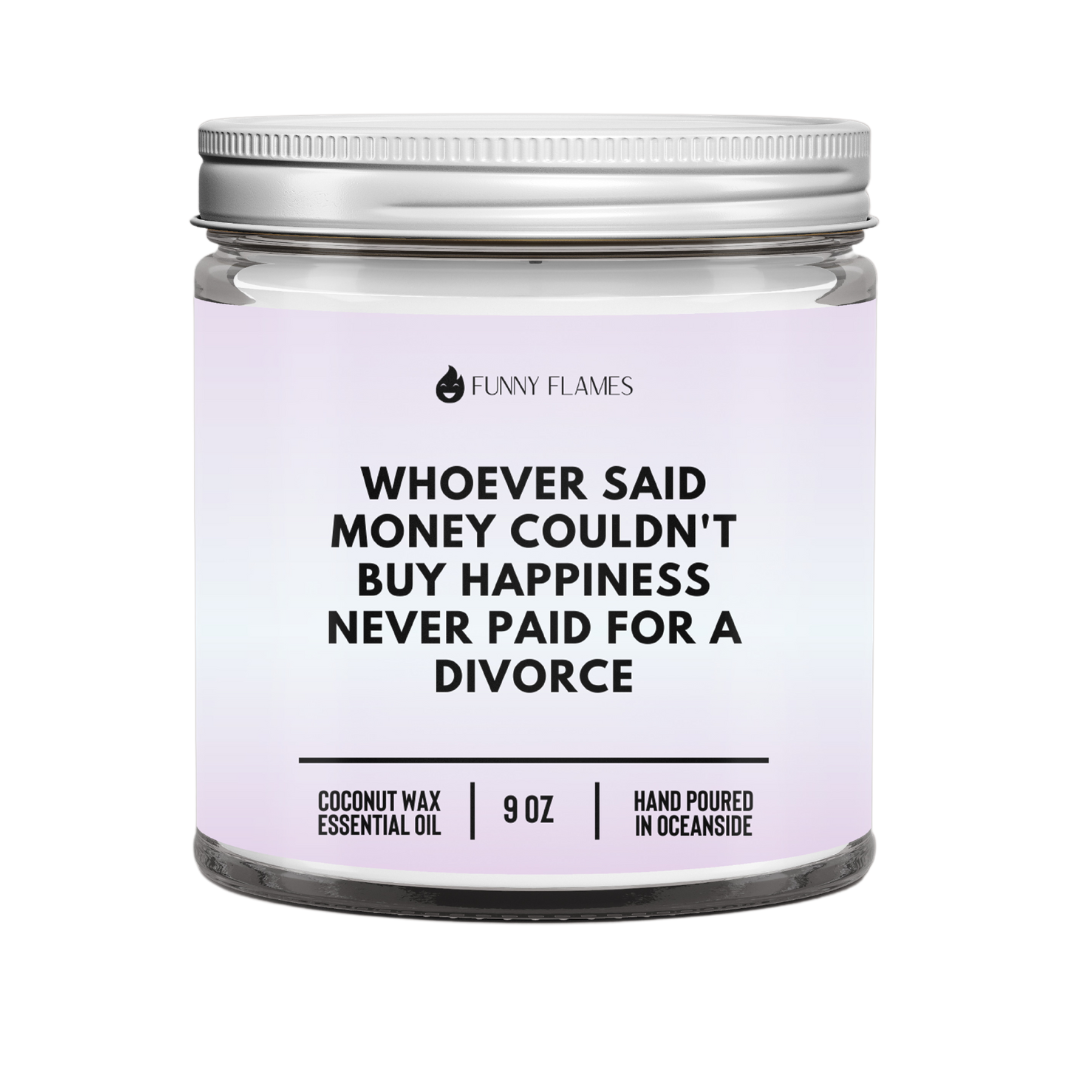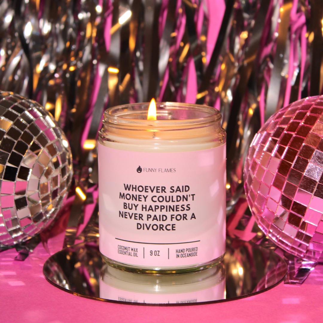 Whoever Said Money Couldn't Buy Happiness Never Paid for a Divorce is a candle that is designed to be a humorous and relatable reminder of the ups and downs of life. This candle is made with all-natural coconut wax and is scented with a blend of rich and warm essential oils. When you light Whoever Said Money Couldn't Buy Happiness Never Paid for a Divorce, you are inviting a sense of perspective and humor into your space. Let this candle help you remember that no matter how tough things may seem, there is always a silver lining. Whether you're lighting it in your home or office, this candle is a reminder to find the humor in life's challenges and to keep moving forward. Let this candle inspire you to stay positive and keep pushing through.
