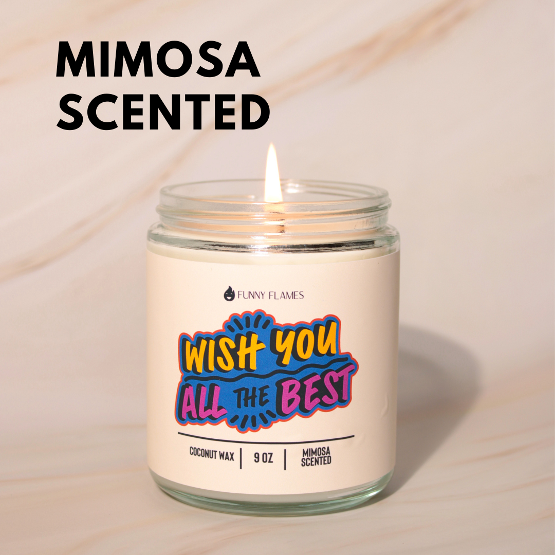 'Wish You All The Best,' the candle that encapsulates a heartfelt wish for success and happiness. With its uplifting mimosa scent, this candle fills the air with the invigorating and effervescent fragrance of citrusy oranges and sparkling champagne. Light up this candle to set the tone for new beginnings, celebrations, or to wish someone well on their journey ahead. The name itself serves as a reminder of good intentions and positive vibes. 'Wish You All The Best' is the perfect gift to send warm wishes and encouragement to friends, family, or colleagues, making every moment feel like a toast to a brighter future.
