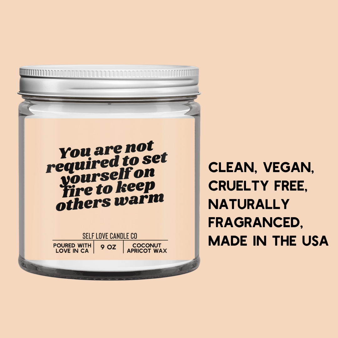 You are not required to set yourself on fire nor should you! Let lighting this candle up be enough fire burning for you.